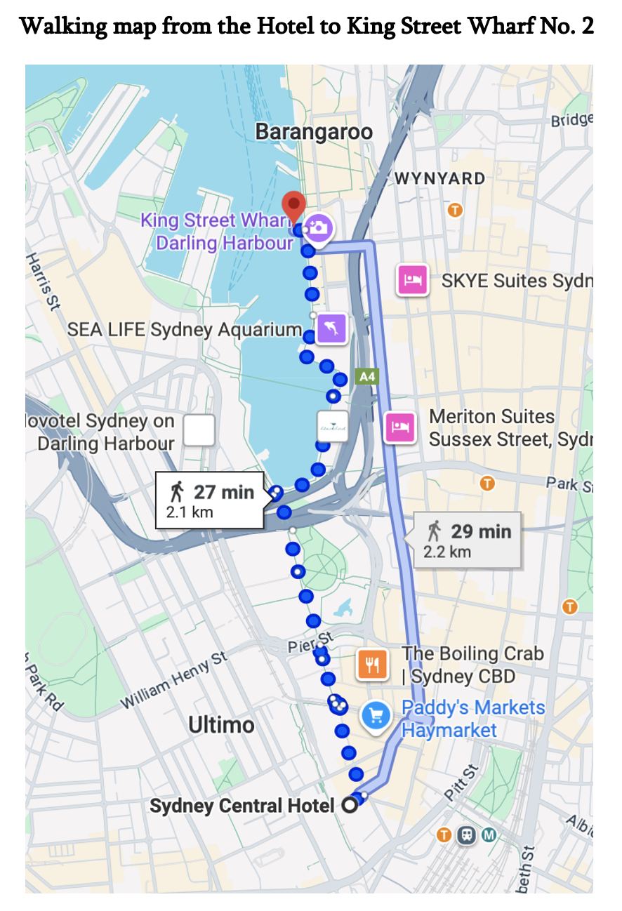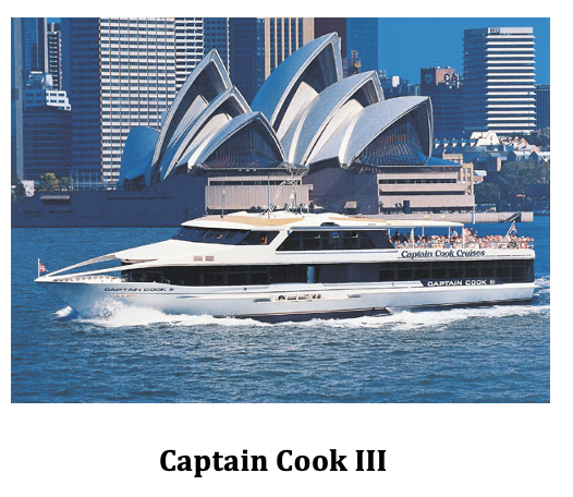 We will board the Captain Cook III cruise boat from No. 2, King Street Wharf. See the provided map on the back of this page.